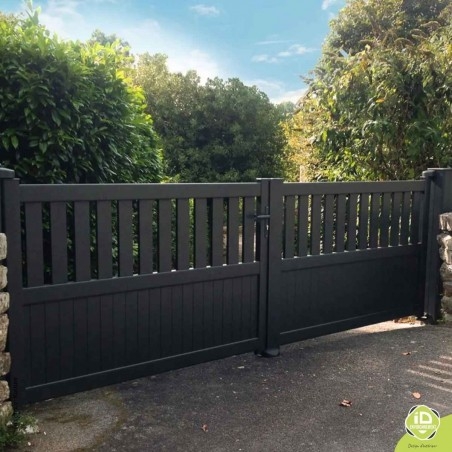 Le portail Argoat est disponible en version battante ou coulissante, offrant ainsi une solution adaptée à chaque configuration d’entrée. Personnalisez-le grâce à un choix de 300 coloris, dont 25 standards, pour un rendu qui reflète parfaitement vos goûts. Conçu en aluminium thermolaqué certifié Qualicoat, il garantit une durabilité remarquable face aux conditions climatiques les plus exigeantes. Compatible avec des options de motorisation et d'interphonie, il combine sécurité, praticité et esthétisme pour s’adapter à vos besoins quotidiens.
