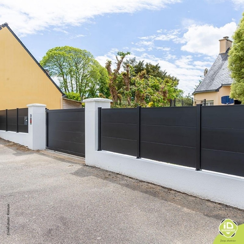 Le portail aluminium sur mesure KARANTAN est un modèle plein, à la forme droite, conçu en aluminium. Doté de lames larges, il séduit par son allure contemporaine. Avec ses finitions soignées, le portail KARANTAN allie élégance et modernité, tout en assurant une protection optimale et une intimité totale pour votre extérieur.